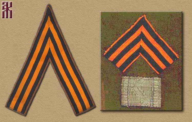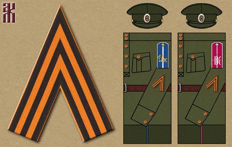 The sleeve insignia is made from St. George ribbon, folded at a 45-degree angle.