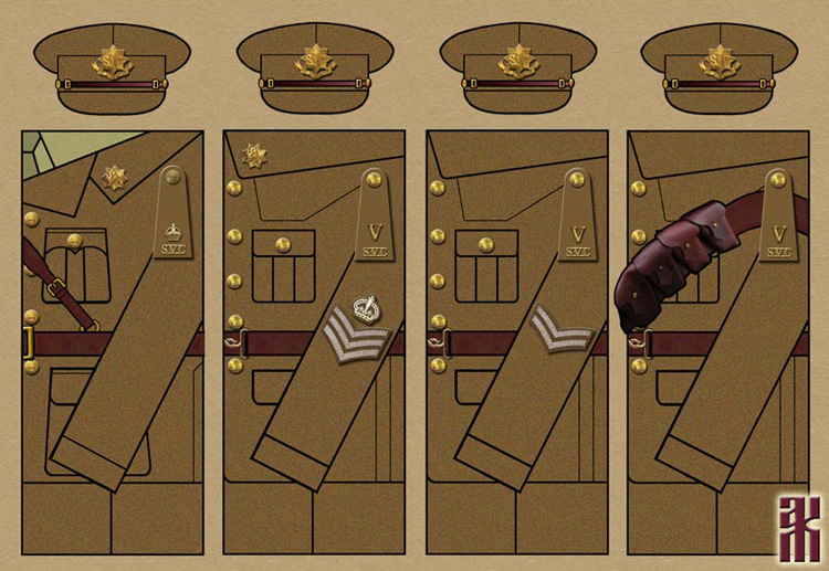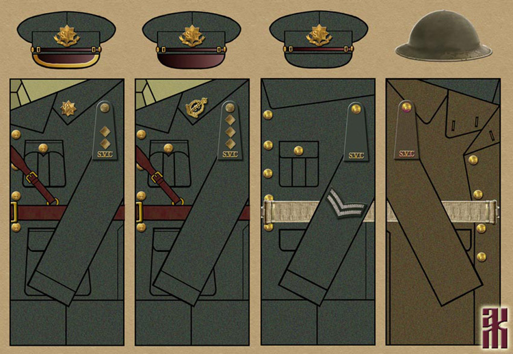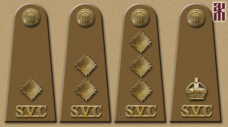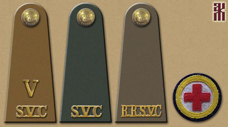 By regimental order, the regiment's officers wore "R.P.S.V.C." insignia on their shoulder-boards.