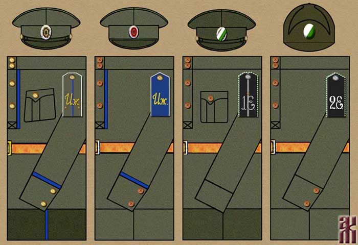 1 and 2 – Uniforms of the Jaeger Battalion of the Izhevsk Rifle Division