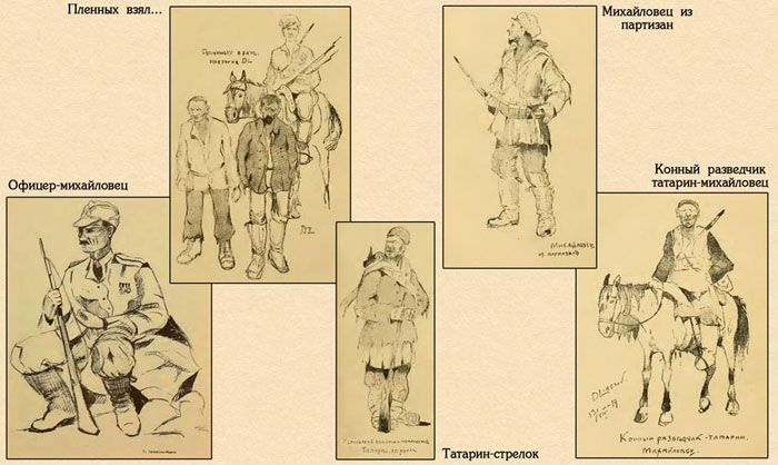 1 – officer; 2 – prisoners; 3 – Tatar rifleman; 4 – partisan; 5 – Tatar horse scout