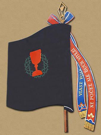 Having adopted the name "Hussite", the division actively took appropriate symbols from the religious and national liberation movement in the Czech Republic of the XV century. As its regiments were formed, its Czech cultural tradition gradually developed, became more complex and rich. Battalion and company flags were also made in the Hussite tradition: using red and black colors with a Hussite chalice.