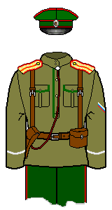 The 3rd Guards Division (Litovski, Kekholmski, St-Petersburgski and Volynski Regiments) had the same scheme, except 1) the cuffs and hat band were piped yellow, 2) buttons and metal were silver, and 3) in a break in the scheme the Litovski also had a yellow hatband, pocket piping and shirt front piping.