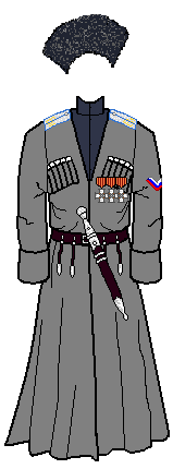 | Officer: official uniform | Trooper: wartime dress | Officer: field dress | Trooper: with bashlyk |