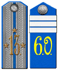 Dress shoulderboards were light blue. Buttons and officer lace were silver. Officer's monogram and rank markings were in gold, and for troopers in yellow.