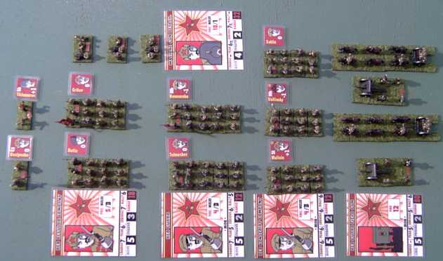 The Reds had a nominal points value of 250, and rolled on the Early Soviets list: