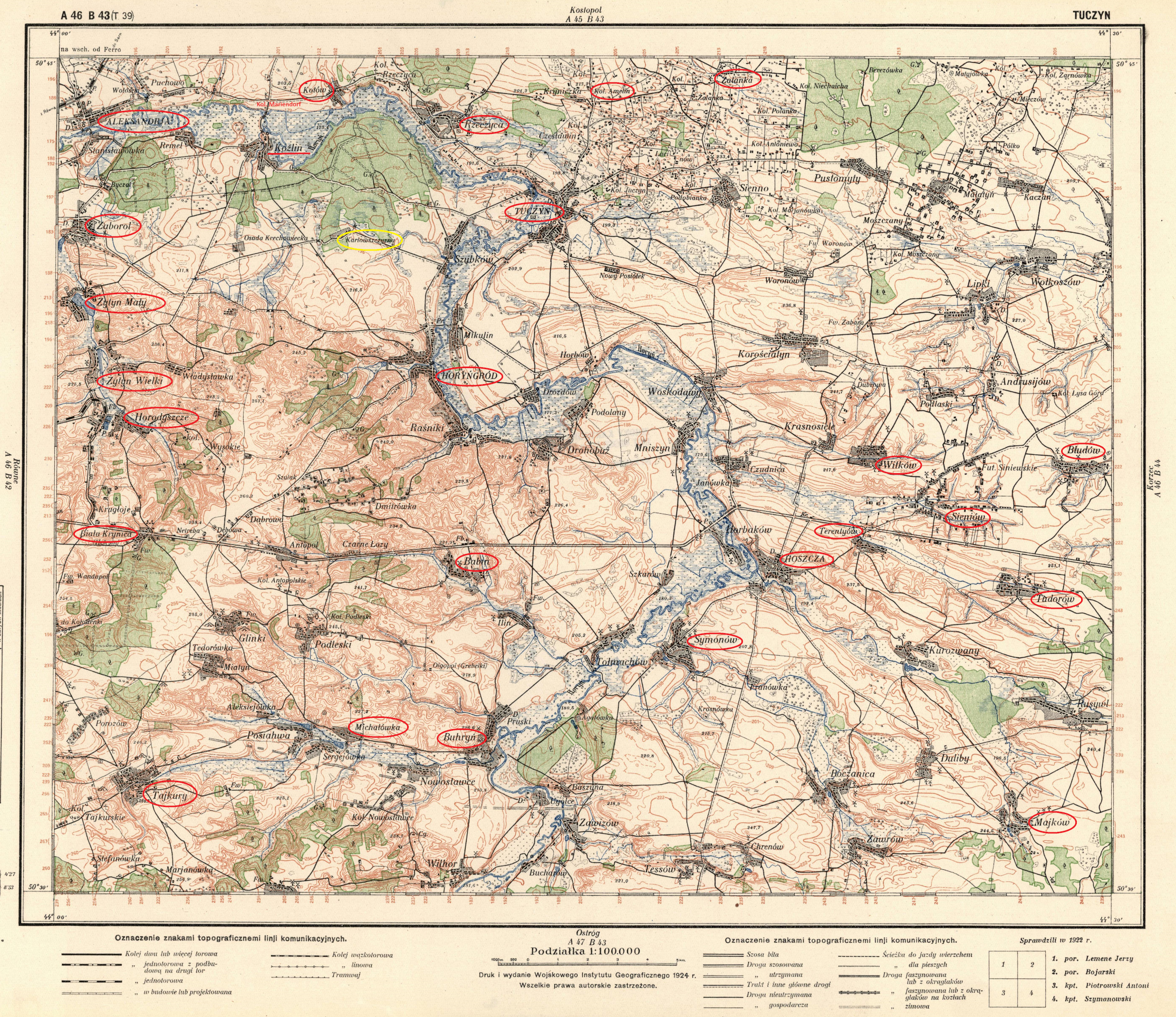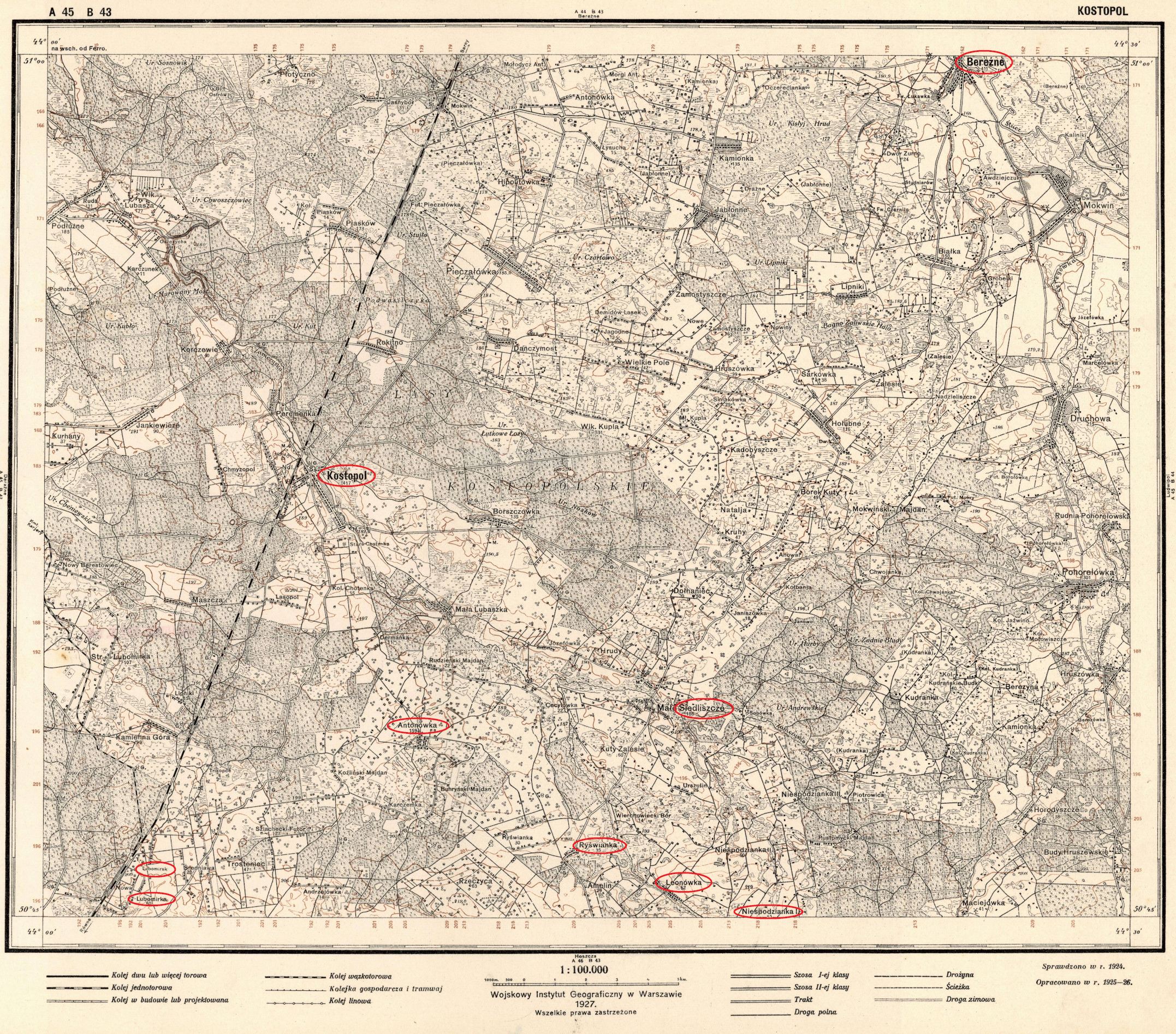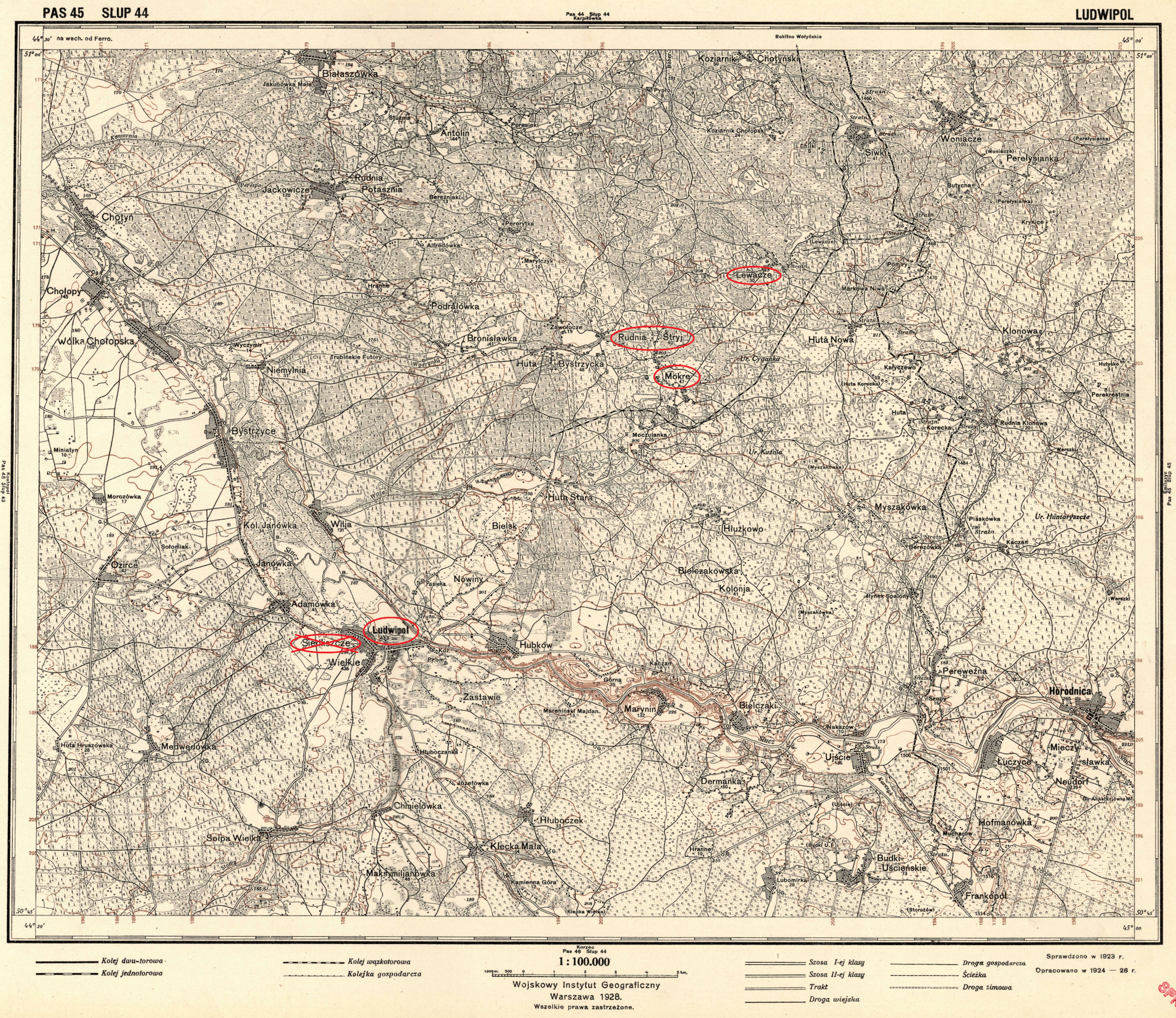 To find the smaller places, and to see the terrain as it was at the time, I have attached some 1920s maps. The originals, in higher definition, can be found at the awesome igrek.amzp.pl.