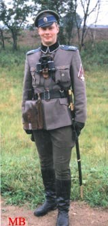 Coloured Shoulderboard, with the older fashioned "L" and crown | Re-enactor officer, in German uniform | Re-enactors, with company standard on rifle bayonet |