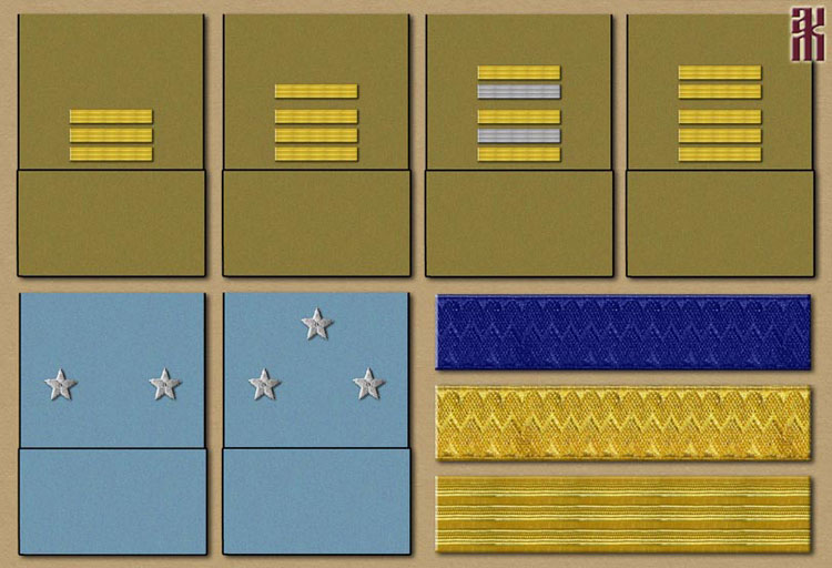 1 and 2 – NCOs in winter uniform; 3, 4, 5, and 7 – officer tunic and greatcoat collar tabs