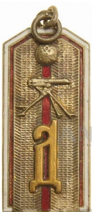 The shoulder-boards were raspberry with white piping and silver lace, with a gold letter "D" for officers, while the lower ranks had raspberry with black piping and a copper letter "D". However, many officers wore their old shoulder-boards and its doubtful the rankers had the metal letters. The "D" was not the Imperial version, but an older ornate version, the same as the infantry (many sites show it open at the top which would have been impractical to cast).