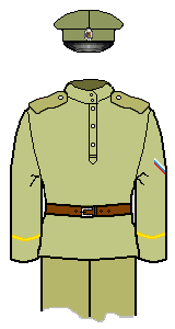 Dress shoulder-boards were plain red, with gold metal. Field shoulder-boards were either plain khaki (or possibly piped red, my sources disagree). It is unclear whether artillery had the usual crossed cannons, but it seems no guards units had unit ciphers (it was a feature of the Imperial Russian Army that the older and senior units often had less distinguishing features).