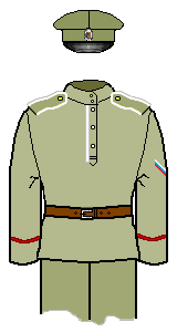 The 3rd Guards Division (Litovski, Kekholmski, St-Petersburgski and Volynski Regiments) had the same scheme, except 1) the cuffs and hat band were piped yellow, 2) buttons and metal were silver, and 3) in a break in the scheme the Litovski also had a yellow hatband, pocket piping and shirt front piping.