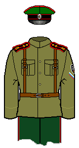 The rest of the uniform was standard Imperial artillery. The cap had a dark green crown, piped red, and a black hat-band, piped red.