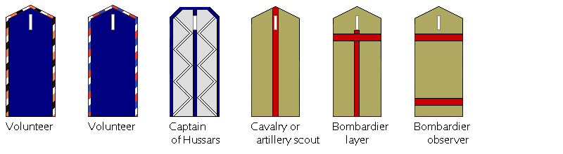 Troops with specialist positions inside normal infantry or cavalry units wore the same uniform as the rest of the unit including shoulder-boards, and instead marked their speciality elsewhere.